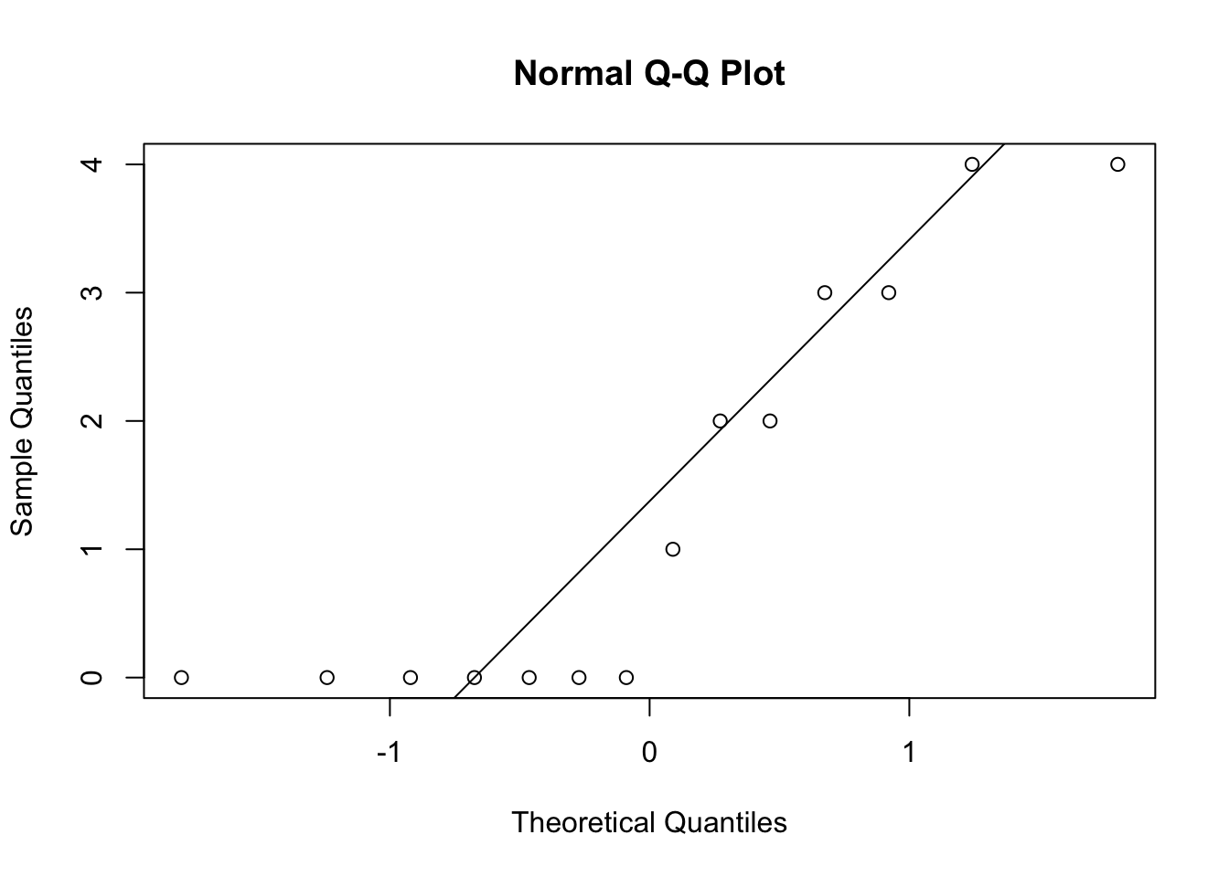 De flesta honor verkar inte ha fått några ungar. Låt oss se på en QQ-plot som vi även använde i vår tutorial om t-test